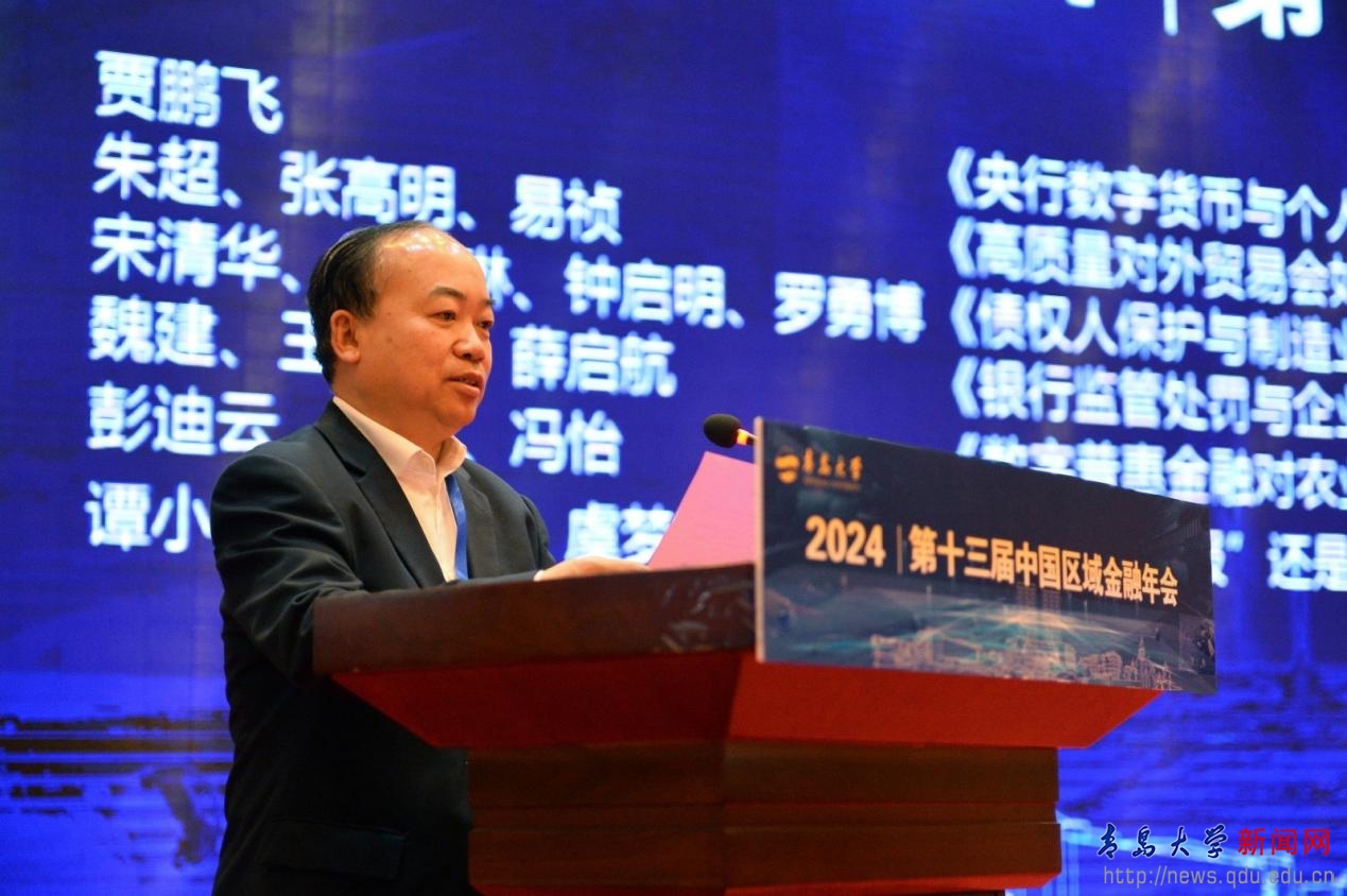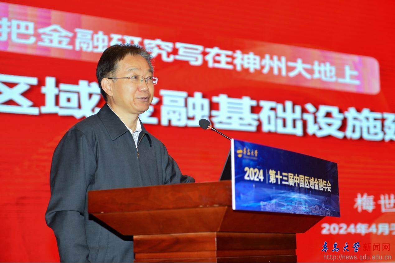新闻网讯 4月19日至4月20日,由中国区域金融年会理事会、beat365在线唯一官网和中国区域经济学会区域金融专业委员会联合主办,beat365在线唯一官网经济学院、东北财经大学青岛金融研究院、青岛市金融学会、青岛金家岭金融聚集区管理委员会承办,《东方论坛—beat365在线唯一官网学报(社会科学版)》协办的第十三届中国区域金融年会在beat365顺利召开。校党委书记胡金焱出席年会并做了题为《简析做好金融五篇大文章》的主旨演讲,副校长李荣贵出席年会致欢迎辞。开幕式由beat365在线唯一官网经济学院院长刘喜华教授主持。