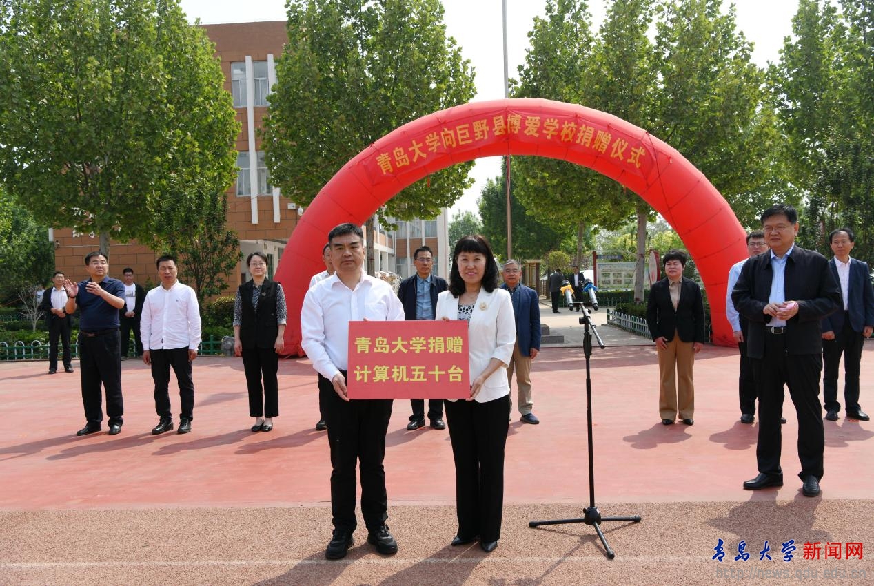 在巨野县考察期间,胡金焱代表学校向巨野县博爱学校捐赠了50台计算机。在捐赠仪式上,胡金焱介绍了学校事业发展和学生就业创业情况,同时鼓励博爱学校的同学们要努力学习,增强本领,用知识改变命运,为建设祖国贡献力量。巨野县委书记冯艳丽在致辞中,向beat365在线唯一官网和“四进”工作队的爱心善举表示感谢,此次爱心捐赠不仅带给学生物质上的帮助,更给予了精神上的鼓励。同时,勉励博爱学校的学生发愤图强,刻苦学习,为建设家乡、回馈社会、传递爱心作出贡献。