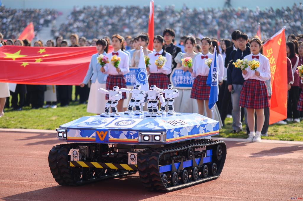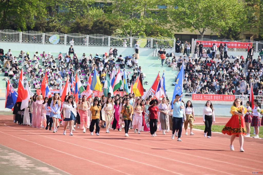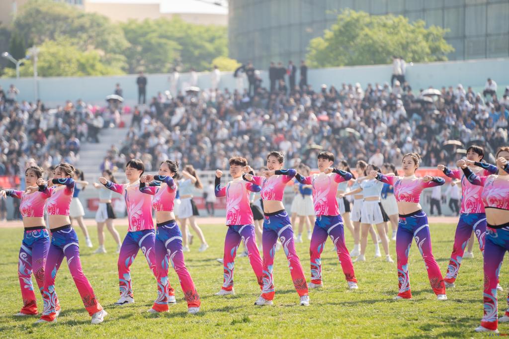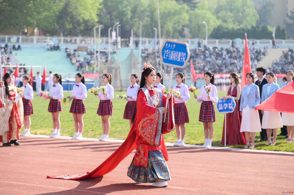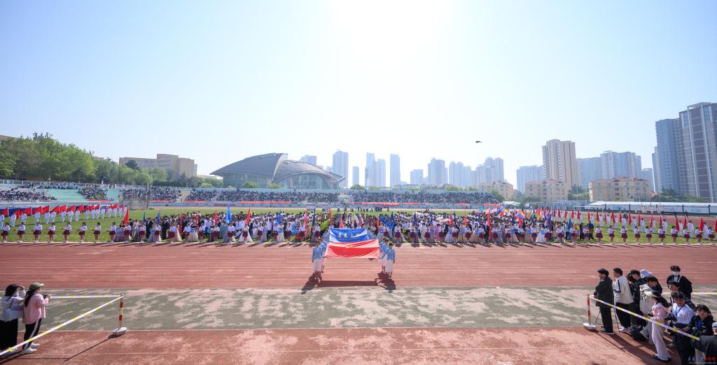 运动员入场式上,国旗护卫队以及各院(部)方队,迈着铿锵有力的步伐,神采飞扬地走过主席台,用激情嘹亮的口号和各具特色的表演展现出青大学子激情澎湃、朝气蓬勃的青春风采。