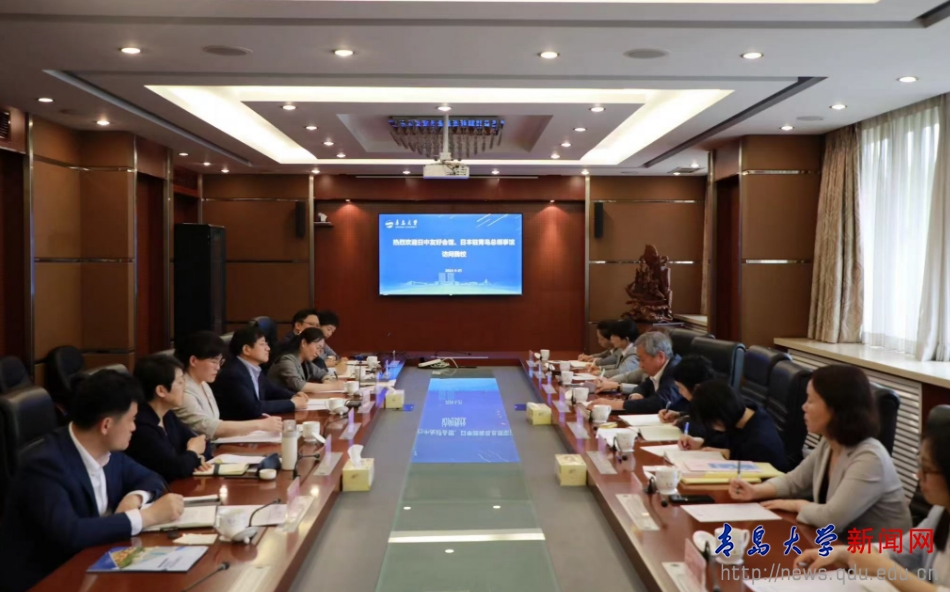 新闻网讯 5月21日下午,校长魏志强在办公楼201会议室会见了到访的日中友好会馆理事长小川正史一行并座谈,日本驻青岛总领事馆首席领事吉田智久美、青岛市外办亚洲处二级调研员王蓬陪同到访,党委常委、副校长何燕主持座谈会。