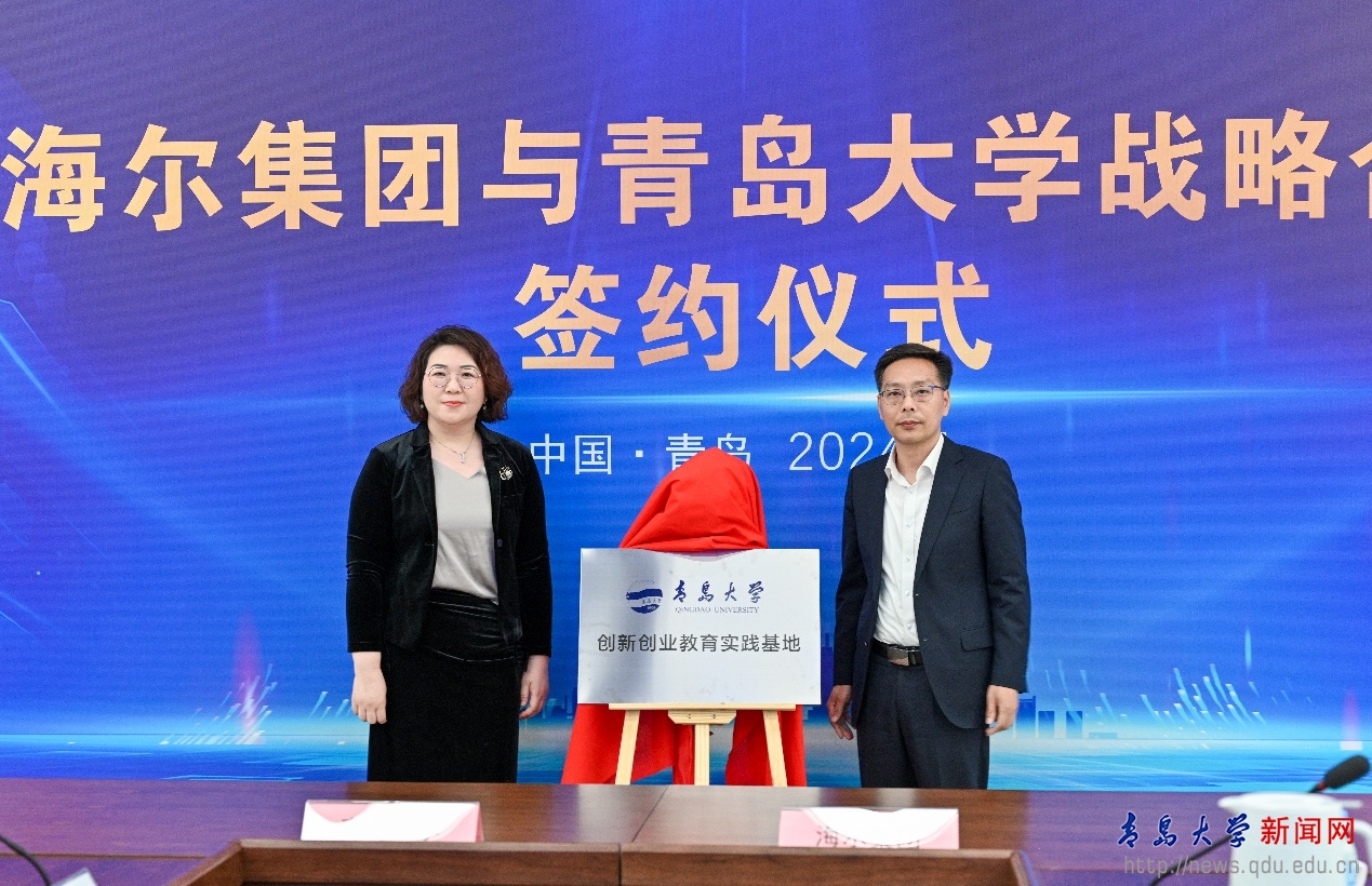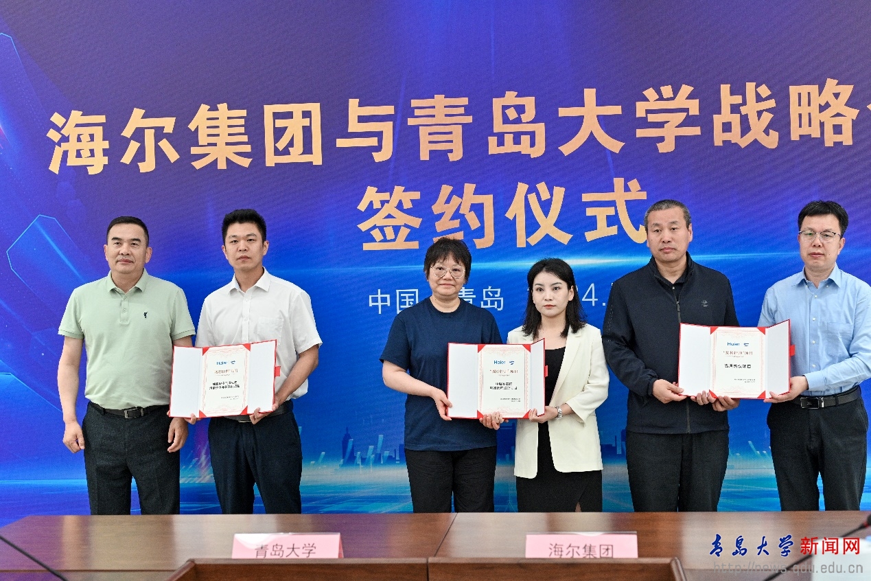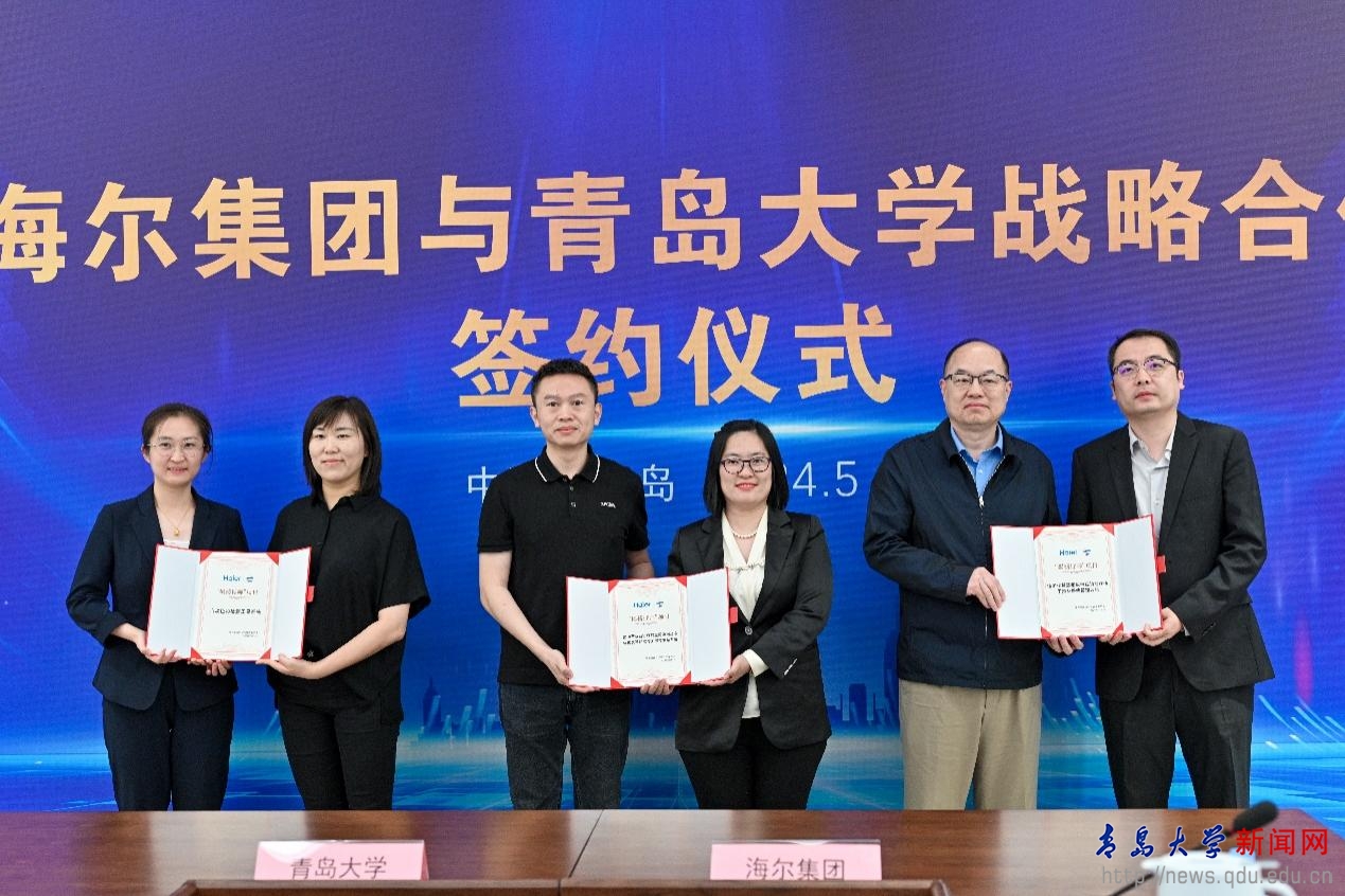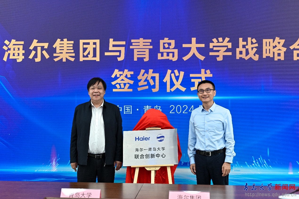 会上,在胡金焱、魏志强、李荣贵、周云杰、梁海山、谭丽霞的见证下,刘恩贤与张玉波签署双方战略合作协议。李荣贵与海尔集团科学与技术委员会执行主任王晔为“海尔-青大联合创新中心”揭牌,beat365在线唯一官网创新创业学院常务副院长王海荣和海创汇董事长刘长文为“海尔-青大创新创业教育实践基地”揭牌。同时,海尔联合创新中心“揭榜挂帅”项目发布,beat3656位学者揭榜“高温热泵”“肿瘤类器官精准药筛治疗”“细胞房空气微生物检测与智慧化”“适老化智慧老年内在功能评估干预及慢病管理”“面向产业链协作的全局协同动态优化及智能推荐关键技术与系统”“自动色彩检测工具系统”6个项目。