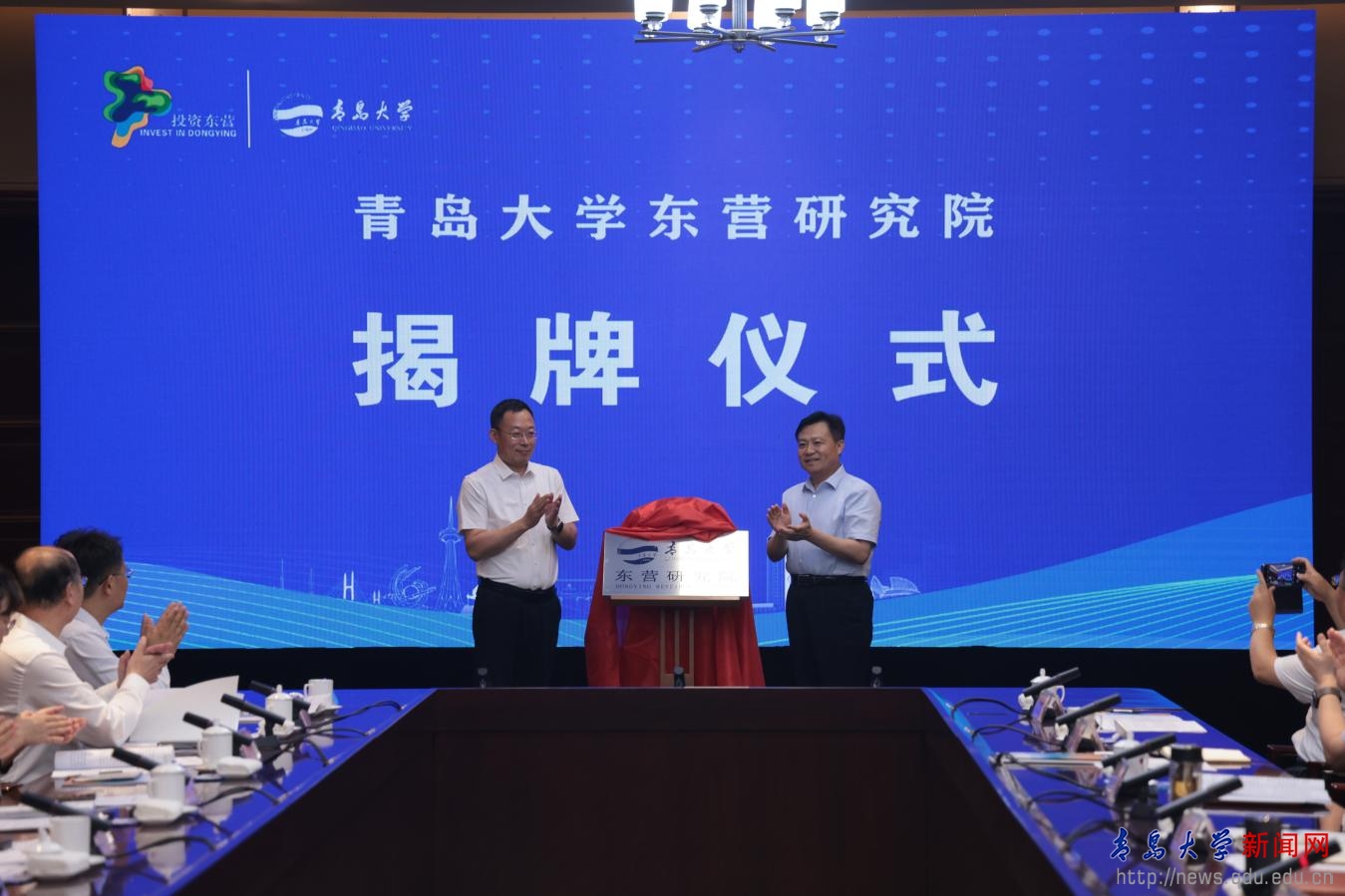 何宪卓和刘恩贤共同为beat365在线唯一官网东营研究院揭牌。