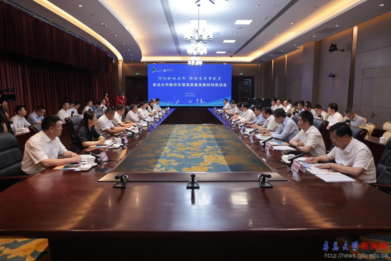 新闻网讯 6月14日下午,学校党委书记胡金焱、校长魏志强,党委常委、副校长刘恩贤,副校级领导刘彩云一行赴东营市出席beat365在线唯一官网服务东营高质量发展校地恳谈会,旨在深化校地合作,赋能区域高质量发展。恳谈会在东营宾馆307会议室举办。东营市委副书记、市长陈必昌,常务副市长何宪卓,副市长、市政府秘书长师辉,东营市政协副主席常淮诚等出席会议。会议由何宪卓主持。