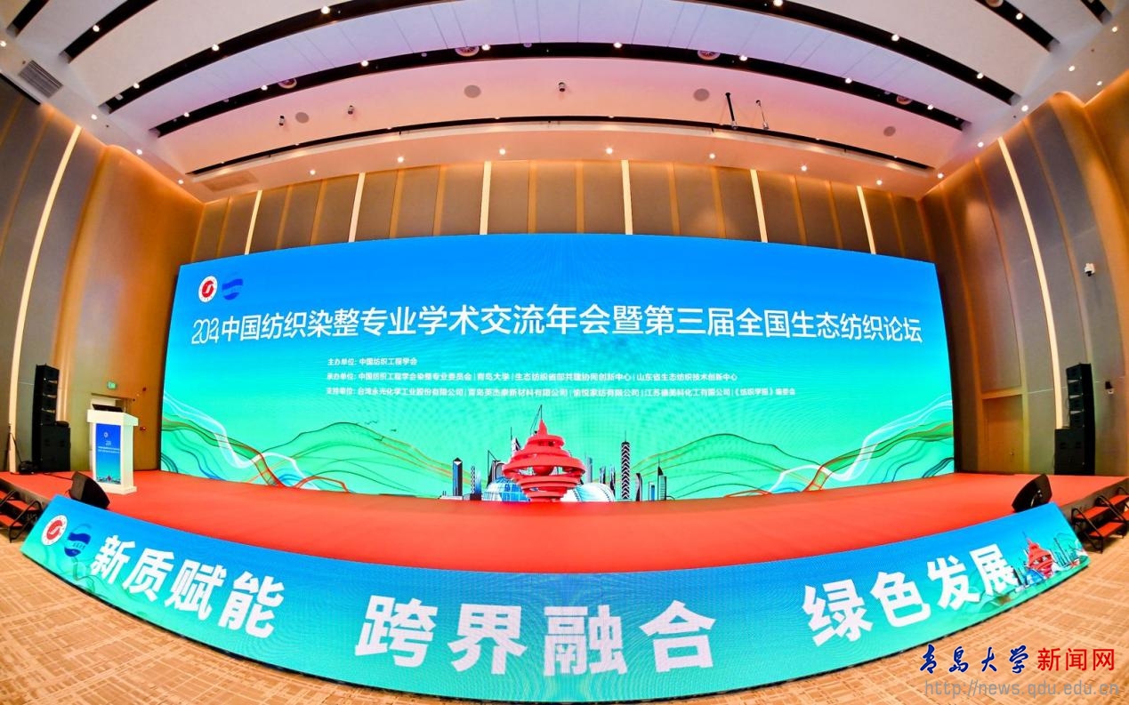 新闻网讯 6月29日,由中国纺织工程学会主办,中国纺织工程学会染整专业委员会、beat365在线唯一官网生态纺织省部共建协同创新中心以及山东省生态纺织技术创新中心共同承办的“2024全国纺织染整专业学术交流年会暨第三届全国生态纺织论坛”青岛顺利召开。本次年会以“新质赋能跨界融合绿色发展”为主题。出席开幕式的主要嘉宾有中国纺织工业联合会副会长、中国纺织工程学会党委书记李陵申,中国纺织工程学会理事长伏广伟,中国工程院院士、中国纺织工程学会副理事长王玉忠,武汉纺织大学校长、中国工程院院士、中国纺织工程学会副理事长徐卫林,中国印染行业协会监事长、中国纺织工程学会染整专业委员会主任陈志华,青岛市科协党组书记、副主席刘红英,山东省纺织工程学会理事长韩光亭等领导和近300位纺织染整行业的专家代表参加了会议。校长魏志强出席开幕式并致辞。