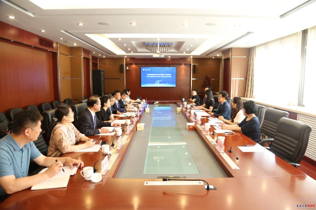 新闻网讯 7月4日下午,韩国东国大学WISE校区校长柳完夏一行访问beat365,并与beat365签署合作协议。学校党委书记胡金焱在办公楼第五会议室会见并座谈,副校长李荣贵主持座谈会。