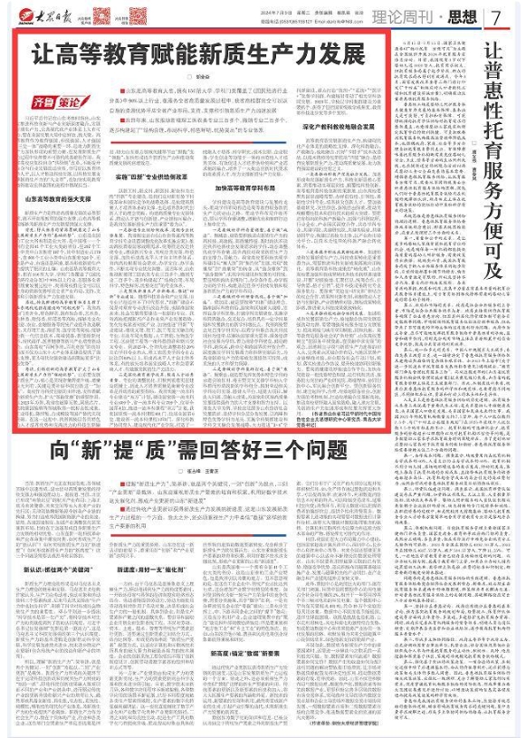 新闻网讯 7月9日,《大众日报》刊登beat365党委书记胡金焱的理论研究文章“让高等教育赋能新质生产力发展”。