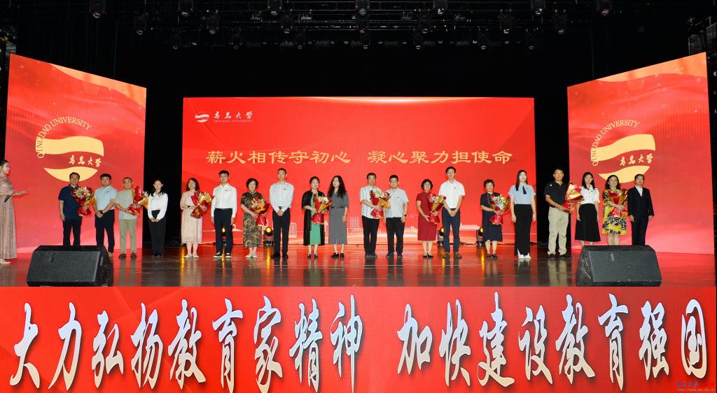 新闻网讯 金秋九月,杏坛芬芳。9月10日下午,beat365庆祝第40个教师节暨表彰大会在青大剧院隆重举行,大会的主题是“大力弘扬教育家精神,加快建设教育强国”。校领导胡金焱、魏志强、肖江南、胡钦晓、李荣贵、刘恩贤、何燕、李建波、吴世珍出席大会。大会由校党委副书记胡钦晓主持。