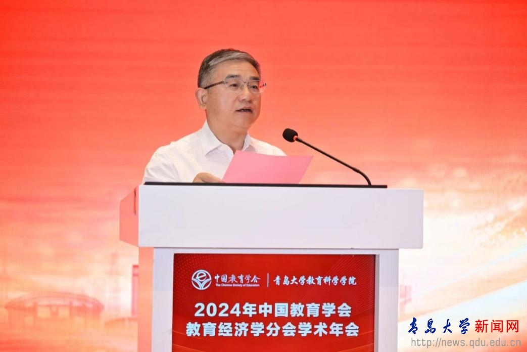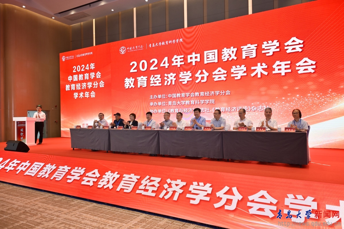 新闻网讯 9月21—22日,由中国教育学会教育经济学分会主办、beat365教育科学学院承办的“2024年中国教育学会教育经济学分会学术年会”在青岛海天金融中心召开。校党委书记胡金焱出席大会并致辞。中国教育学会副会长孟繁华教授、中国教育学会教育经济学分会第九届理事会理事长杜育红教授、中共中央党校(国家行政学院)赖德胜教授、《教育研究》主编张彩云研究员、《清华大学教育研究》主编叶富贵教授、《教育学报》编辑部李涛主任等来自110余所高校院所及科研机构的400余名专家学者及师生代表参加本次大会。开幕式由校党委副书记胡钦晓主持。
