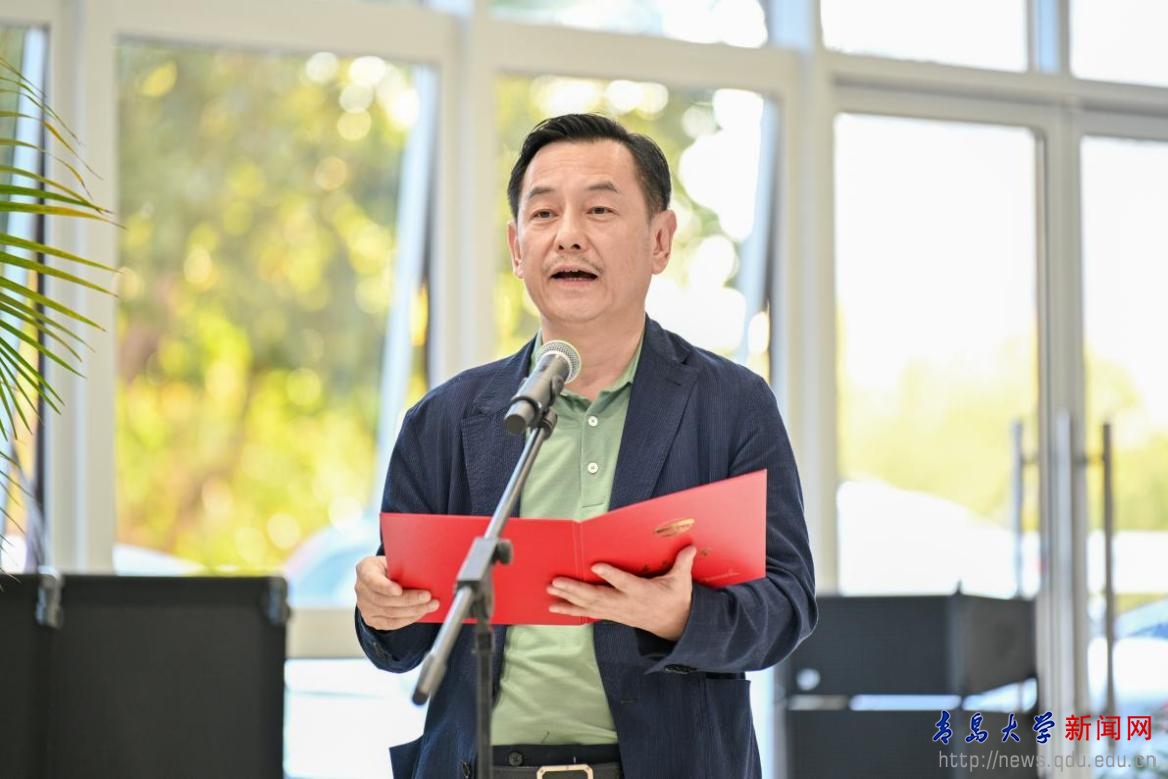 新闻网讯 9月27日下午,学校在会议中心举行陈忠洲先生《壮美河山》书画作品捐赠仪式。校党委书记胡金焱,中国致公党中央委员、致公党中央文化专委会副主任、中国致公画院副院长陈忠洲,中国艺术研究院访问学者、青岛山海书画院院长苏兆伟出席仪式。仪式由校党委常委、副校长刘恩贤主持。