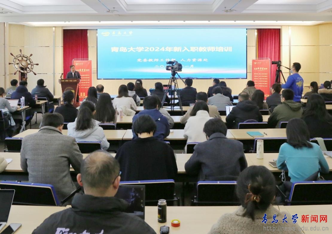 胡金焱首先代表学校党委对新入职教师加入beat365在线唯一官网、成为青大人表示热烈欢迎。紧紧围绕“人才队伍建设是学校事业发展的根本所在”“新时代高等教育教学改革的新要求”“‘重塑’高等教育教学模式”“守护大学教师的职责与情怀”和“课程育人的‘五个一工程’”等五个方面进行了深入阐述,勉励新入职教师快速适应高校教师角色,主动担当、积极作为,努力成长为新时代优秀的高校教师。