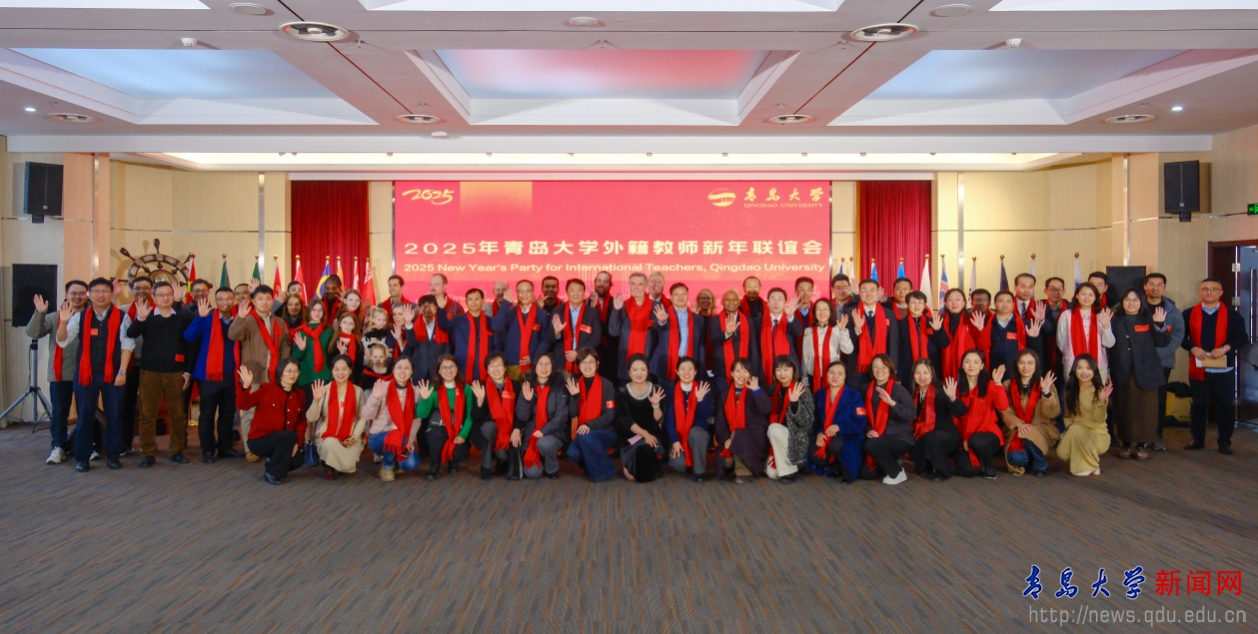 魏志强代表学校向出席联谊会的外籍教师和来宾表示热烈欢迎。他回顾了过去一年学校在拓展国际交流合作、优化国际学科生态、推动国际产学研融合、加强国际师资队伍建设等国际化办学领域所取得的成绩。他表示,学校国际化办学工作所取得的成绩和发展,离不开青岛市相关职能部门的关心与支持,凝聚了学校全体外籍教师及参与外专工作的同事们的辛勤工作与奉献付出。展望2025年,他希望,包括外籍教师在内的全体青大人继续并肩携手,以学科国际化建设为龙头,以人才队伍的国际化建设为关键,以国际化人才培养为目标,以国际化课程建设为切入点,全面推进学校国际化大格局建设。