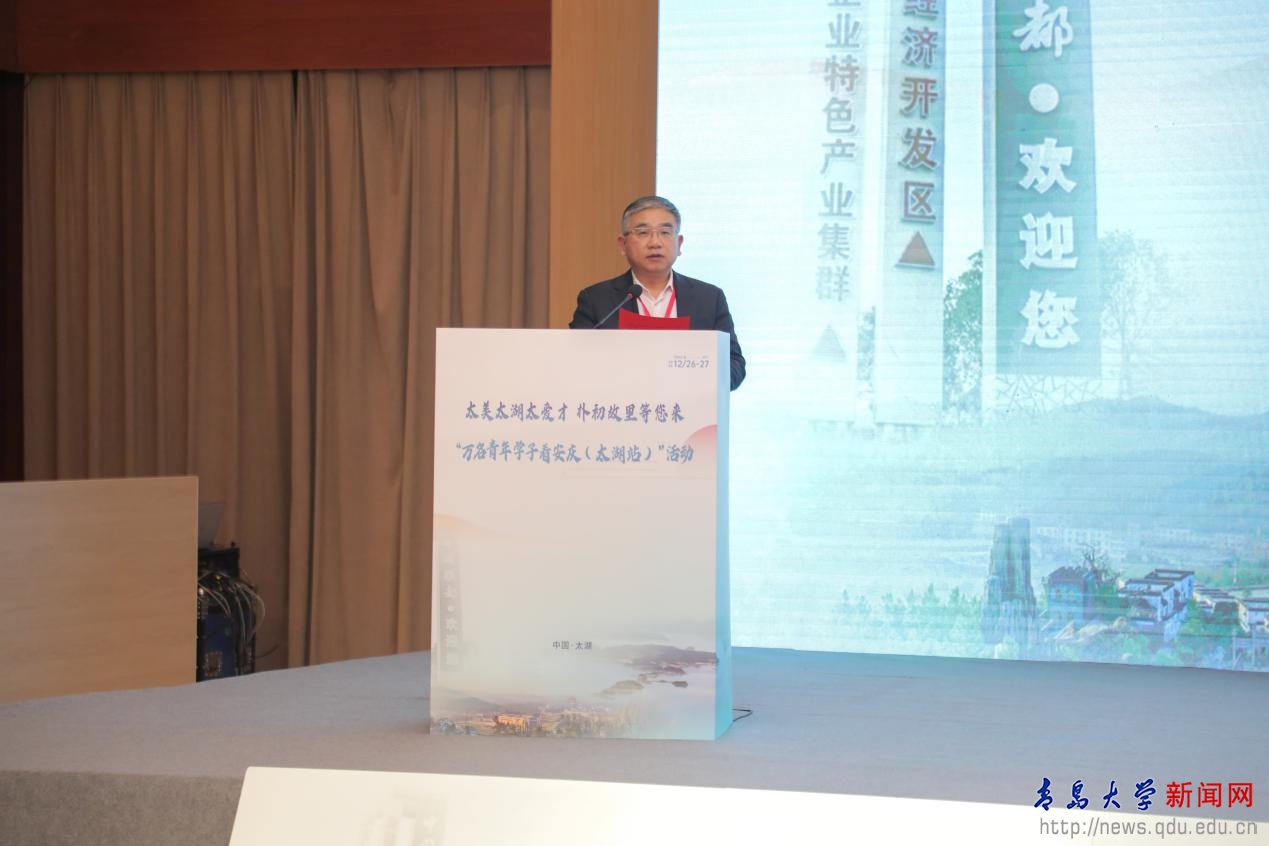 胡金焱作为高校代表,在校地企合作签约仪式上讲话。他表示,安庆市、太湖县一直以来始终关心支持beat365在线唯一官网发展,希望校地校企深入合作,实现资源整合、优势互补、携手共赢,进一步推进产教融合、科教融汇,打造合作共赢新亮点、搭建人才培养新平台、激活高质量发展新动能。