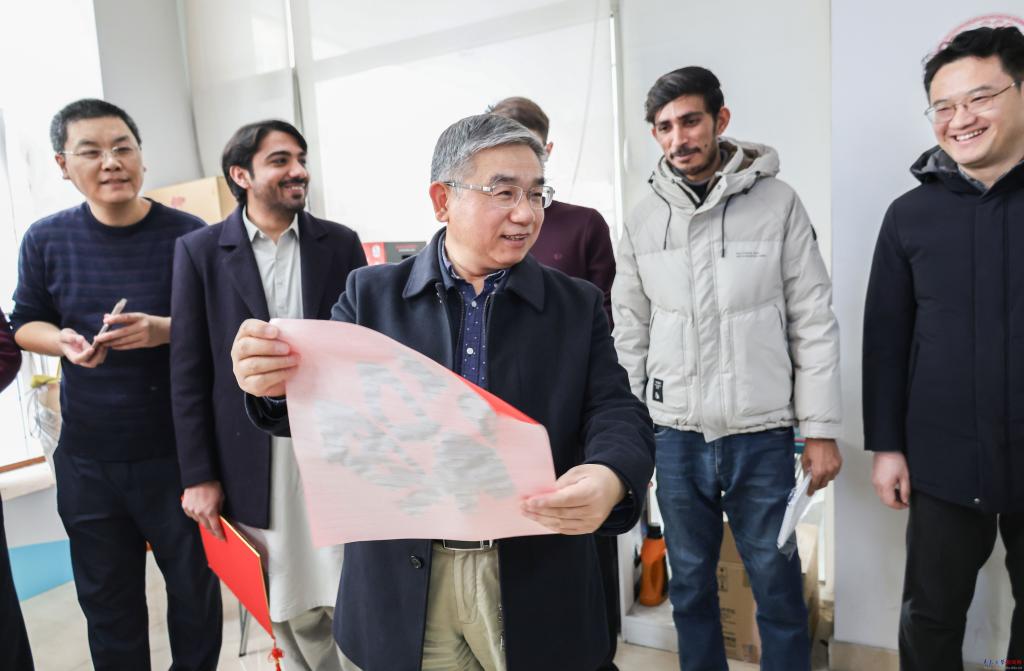 胡金焱一行到国际教育学院看望寒假留校留学生,与留学生亲切交谈,十分关切地询问在校学习和生活情况,并着重强调做好寒假期间留学生的日常管理和服务保障工作。胡金焱对留学生予以鼓励和期望,希望各位留学生能够刻苦钻研专业知识,深入学习中国传统文化,努力成为中外文化交流的传播者和践行者。