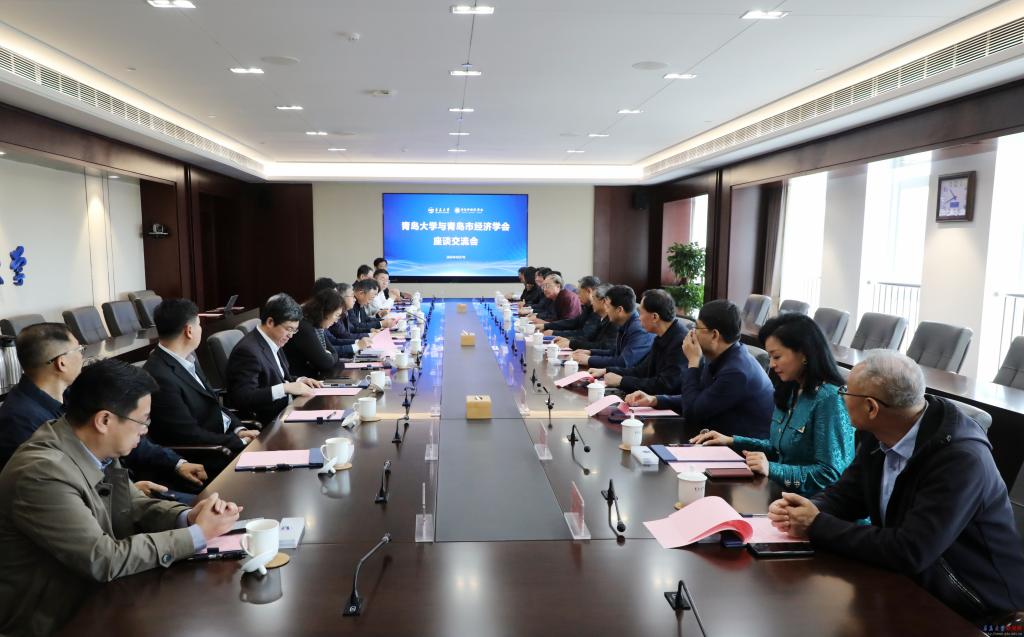 新闻网讯 4月27日上午,青岛市经济学会一行来校座谈交流。校党委书记胡金焱在会议中心致远厅会见并座谈。校党委常委、副校长刘恩贤陪同参加座谈会。