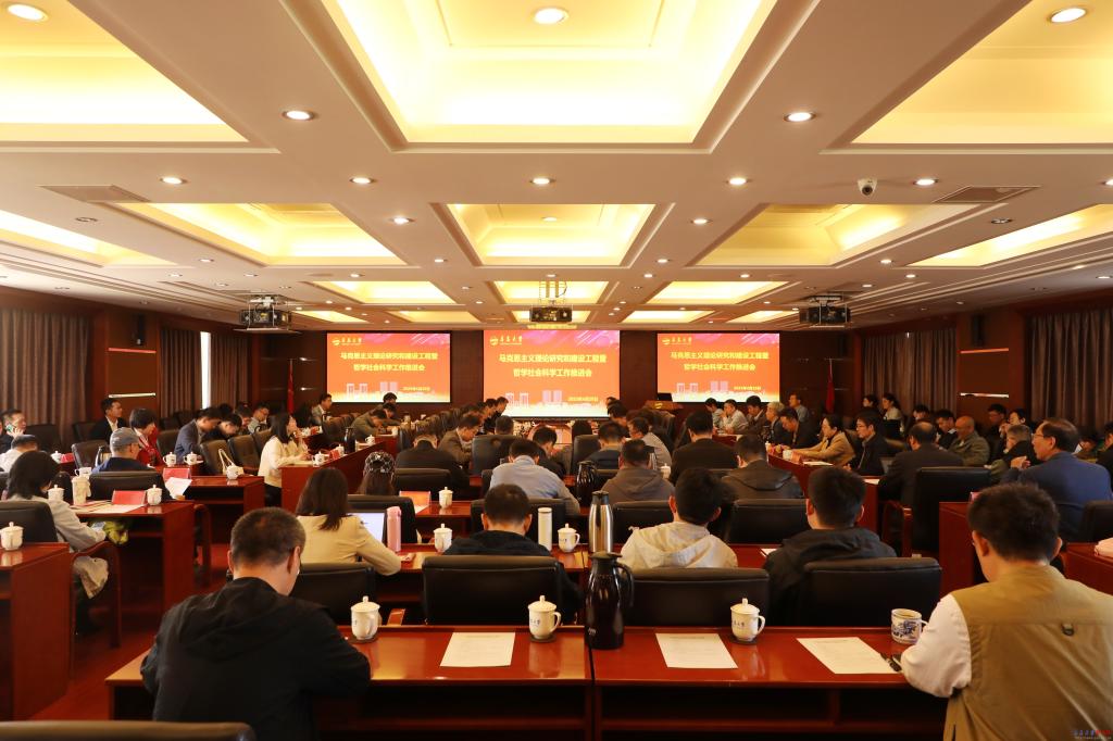 新闻网讯 4月29日上午,学校在办公楼第一会议室召开马克思主义理论研究和建设工程暨哲学社会科学工作推进会,就学校马克思主义理论研究和建设工程以及哲学社会科学相关工作进行再部署、再动员。校党委书记胡金焱出席会议并讲话。党委副书记胡钦晓主持会议,校党委常委吴世珍出席会议。