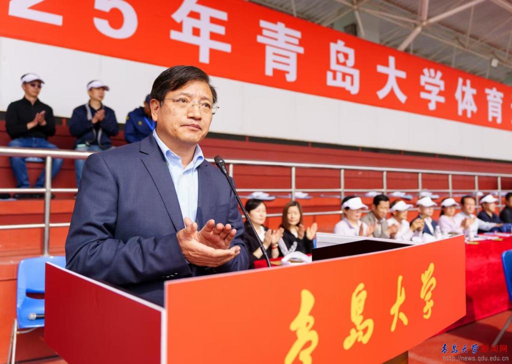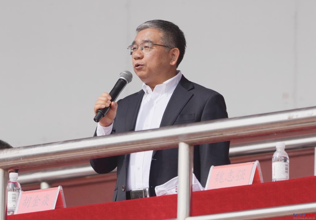 校长魏志强致开幕词。他表示,一年来,beat365积极响应国家号召,深入落实“一二三四五”协同育人理念,把体育融入人才培养全过程,体育工作取得显著成效。学校创新构建了“课内外一体化”体育教学模式,多彩的体育运动在学校的育人工作中发挥着重要的作用,已成为校园文化的一大亮点。他希望更多的同学能够参与到体育运动中来。在比赛中挑战极限、超越自我,在运动中体验纯粹、享受快乐,在拼搏中锤炼意志、锻造品格。