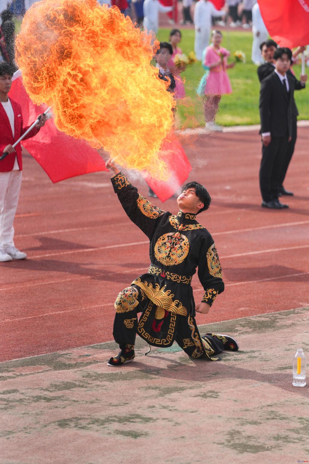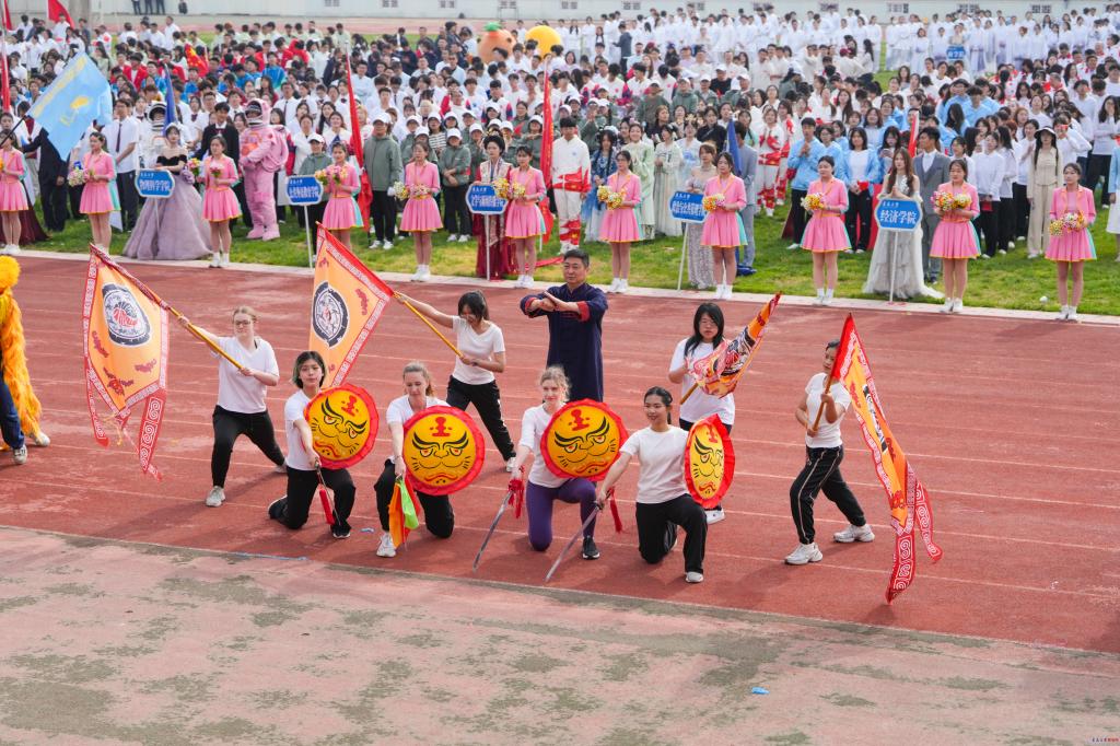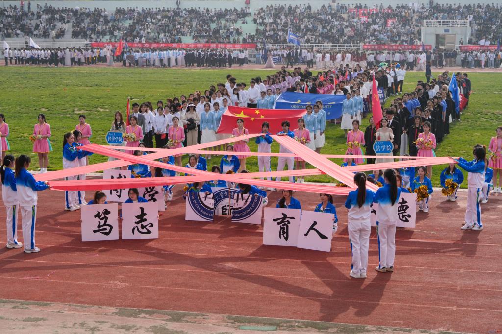 伴随着《运动员进行曲》的旋律,国旗、校旗方队,裁判员方队和30支由师生组成的各单位参赛代表队以饱满的热情和精彩的表演依次步入运动会场,有序通过主席台接受检阅。入场仪式上,全体师生精神抖擞、朝气昂扬,嘹亮的口号、矫健的步伐,彰显了学校师生拼搏进取的精神面貌以及勇担重任的决心。开幕式现场还进行了八段锦和健美操表演,精彩的表演赢得全场观众热烈的掌声和欢呼声。