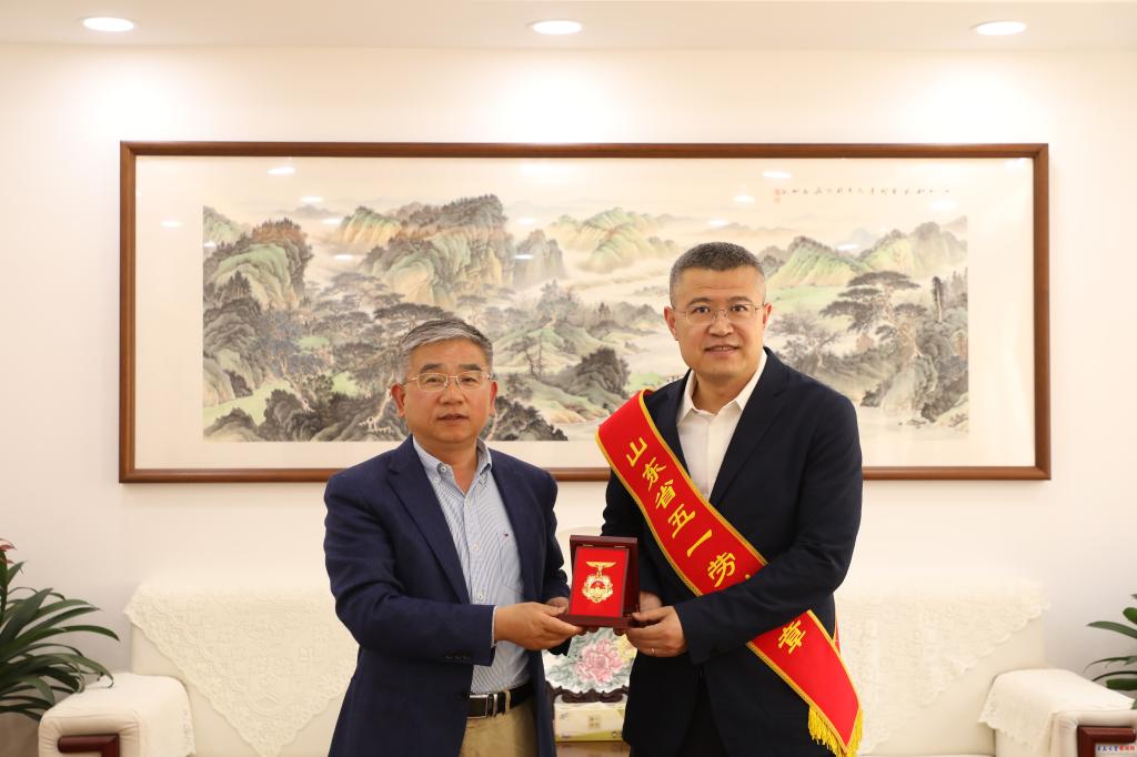 新闻网讯 5月21日,校党委书记胡金焱在办公楼320接待室亲切会见了荣获“山东省五一劳动奖章”荣誉称号的自动化学院教授于金鹏。