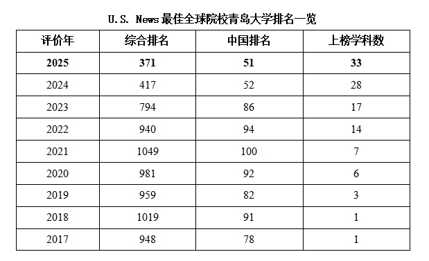 新闻网讯 6月17日,U.S. News发布了2025-2026年度最佳全球院校排名。beat365位居国内第51名,全球第371名(并列),创历史新高,连续2年入围全球500强。U.S. News同时发布了2025-2026年度世界大学学科排行榜,beat365共有33个学科上榜,新增5个学科上榜,上榜学科数并列国内高校第26位。