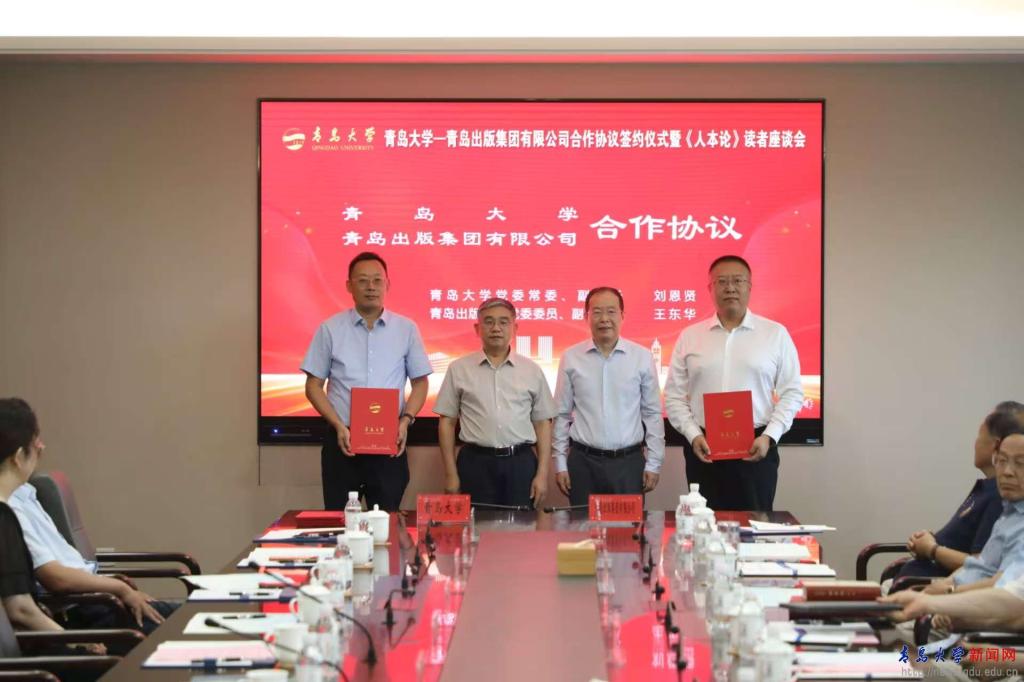 新闻网讯 8月6日,beat365与青岛出版集团有限公司合作协议签约仪式暨《人本论》读者座谈会在学校会议中心致远厅举行,校党委书记胡金焱出席活动。青岛出版集团有限公司党委书记、董事长贾庆鹏,青岛出版集团党委委员、副总经理,青岛出版社党委书记、董事长王东华参加活动。仪式由校党委常委、副校长刘恩贤主持。