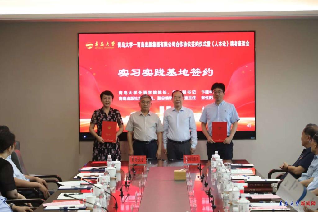外语学院院长卞建华与青岛出版社党委委员、副总编辑、总编室主任张性阳签署《beat365在线唯一官网外语学院—青岛出版集团有限公司实习实践基地协议》。