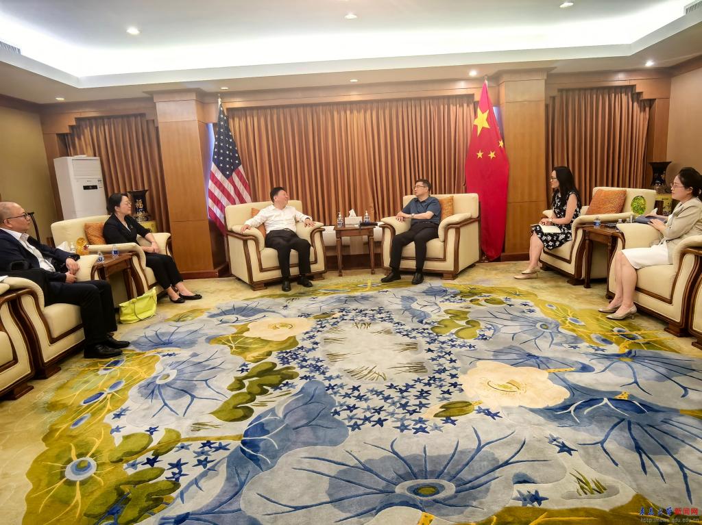 在中国驻洛杉矶总领事馆,总领事馆教育参赞黄伟等接待了代表团一行。黄伟介绍了洛杉矶领区内的高等教育基本情况,并针对beat365实际情况提出了对美交流建议。双方就优化交流美国高校布局以及青年使者交流学习计划(YES项目)等进行了深入交流。