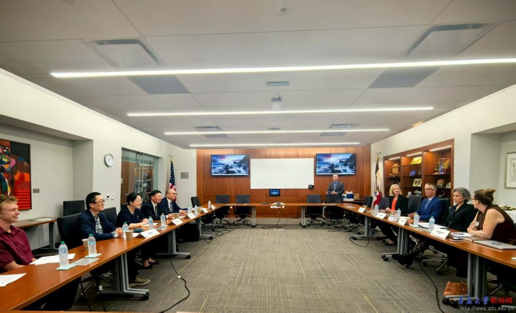 在德雷克大学访问期间,陈涛一行与德雷克大学校长马蒂·马丁、教务长苏·马蒂森、国际处处长安妮可·基尔以及文理学院院长格辛·格哈德等举行工作座谈。双方分别介绍了项目年度合作情况,随后重点就学生注册、人员派遣、教学等有关事项进行了深入交流。