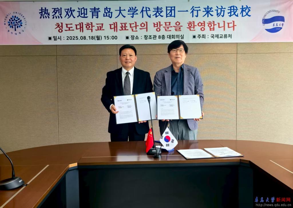 在韩国明知大学访问期间,代表团一行与副校长宣正源、副校长尹钟彬等进行了工作会谈,双方就推进体育专业硕博学生联合培养项目的招生、人才培养以及共建孔子学院等进行了商讨,签署了《中国beat365在线唯一官网—韩国明知大学研究生联合培养与学科共建协议书》。双方将于2026年起合作培养体育专业硕博生,并共同致力于推进孔子学院共建合作。体育学院代理院长方群随代表团访问。