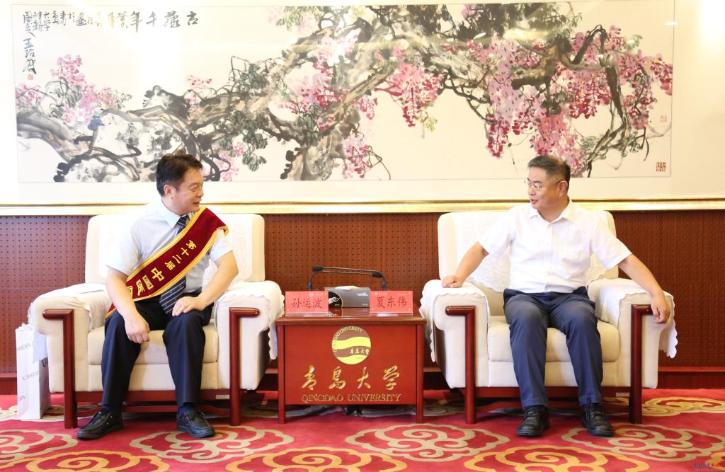 会谈中,孙运波分享了参加“中国医师节”庆祝大会暨第12届“中国医师奖”颁奖大会的心情和感受。他说:“中国医师奖不仅仅属于个人,更是属于青岛市全体医护工作者,这是对大家在抗疫一线中展现出顽强拼搏、日夜奋战精神的肯定和认可”。他表示,要在科研、临床和防控一线继续顽强拼搏、忠诚担当,在祖国和人民需要的时候挺身而出,哪里有疫情,哪里危险大,就冲在哪里,奉献在哪里,为疫情防控取得重大战果做出新的贡献。