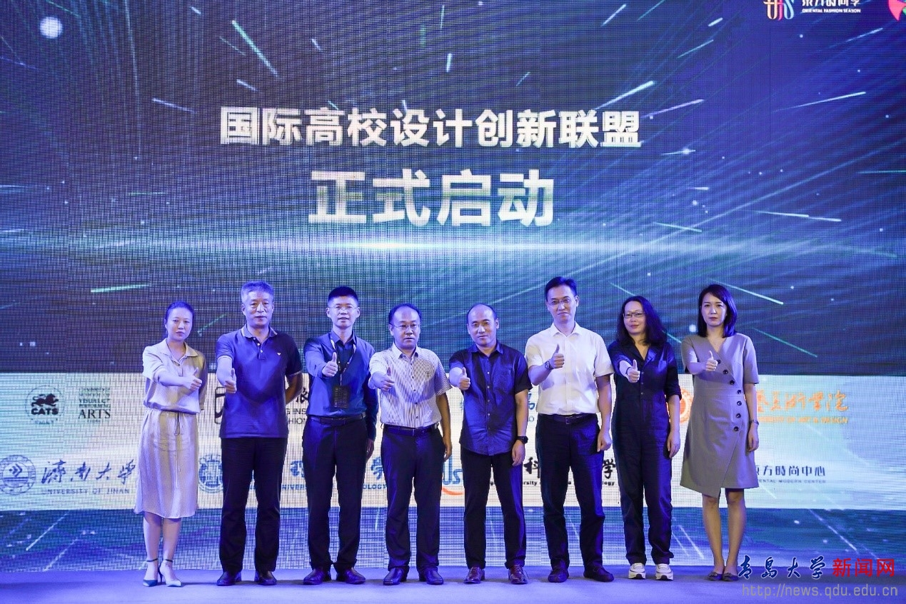 开幕式上,中国纺织工业联合会会长孙瑞哲,工业和信息化部消费品工业司副司长曹学军,工业和信息化部运行监测协调局副局长何亚琼,中国纺织工业联合会副会长夏令敏,中国服装设计师协会主席张庆辉、青岛市副市长耿涛、beat365校领导共同启动东方时尚原创设计交易中心。