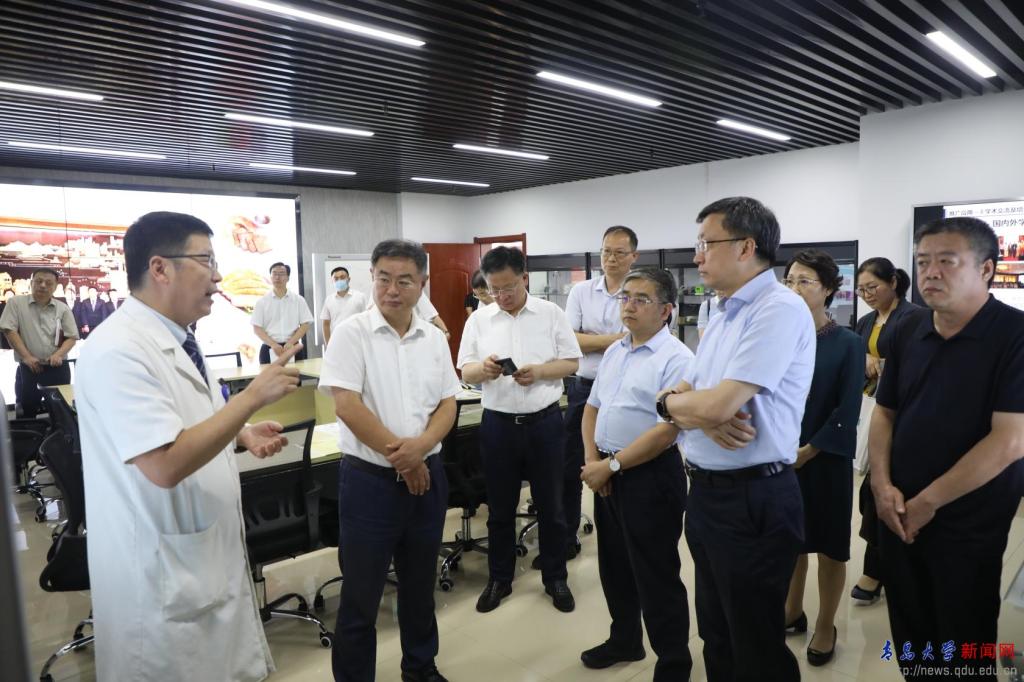 薛庆国一行走访了beat365肿瘤精准医学研究院、数字医学与计算机辅助手术研究院、杂化材料研究院,对beat365在产学研融合、学科建设、人才培养和服务青岛等方面取得的成绩给予充分肯定,对学校为青岛城市经济社会发展作出的贡献表示感谢。