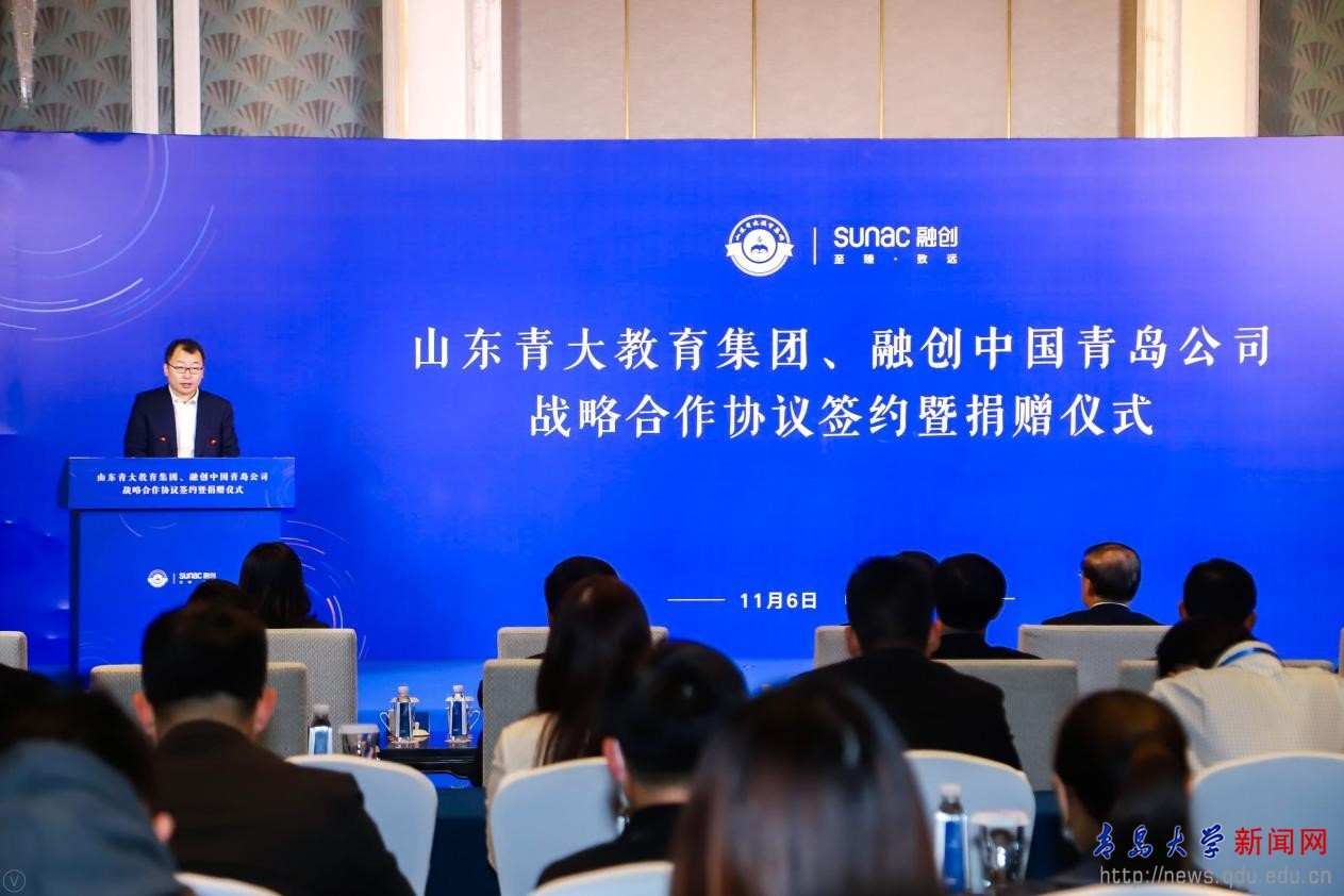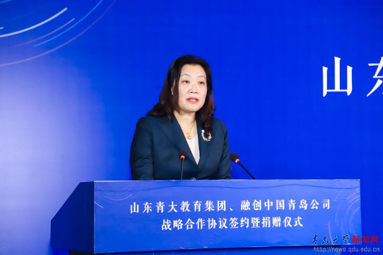 于惠娟在致辞中表示,融创青岛与山东青大教育集团的合作将是一次推动城市教育发展的重要实践,相信在各方的共同努力下,本次合作定能为青岛海洋活力区教育高质量发展,贡献新的更大的智慧和力量。