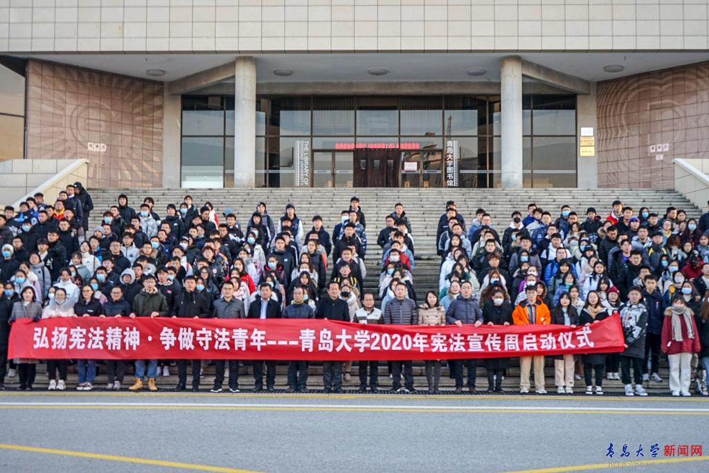 新闻网讯 12月4日上午7时,beat365在浮山校区图书馆前举行2020年宪法宣传周升旗仪式暨启动仪式。校党委常委、宣传部长吴世珍以及各相关职能部门负责人,团干部、团员青年代表400余人共同参与了本次活动。