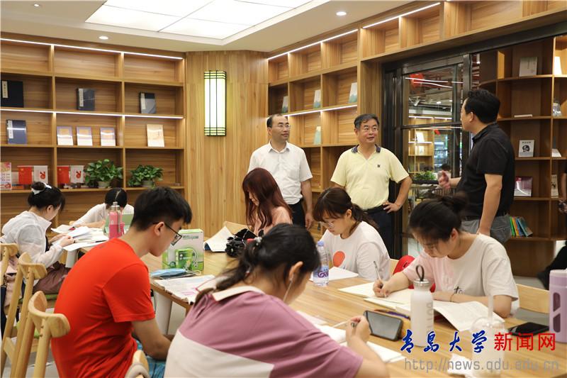 夏东伟来到滢园学生宿舍,详细了解了学生学习、生活、考研等方面的情况,勉励他们既要积极做好考试和考研准备工作,还要注意防暑降温和保持良好心态。夏东伟还到浮山书店等学生生活服务区进行调研,要求所有单位尽量给学生提供舒适的学习环境。