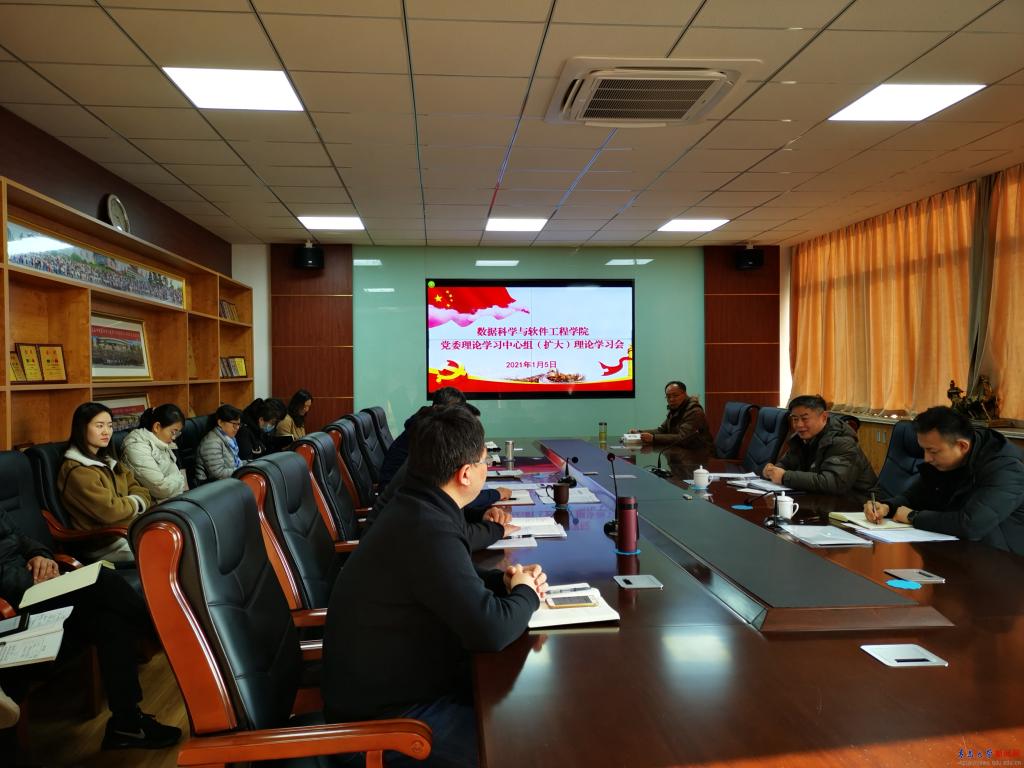 新闻网讯 1月5日上午,数据科学与软件工程学院在睿思楼325召开学院党委理论学习中心组(扩大)理论学习会,校长夏东伟到场巡听督学并作指导讲话。