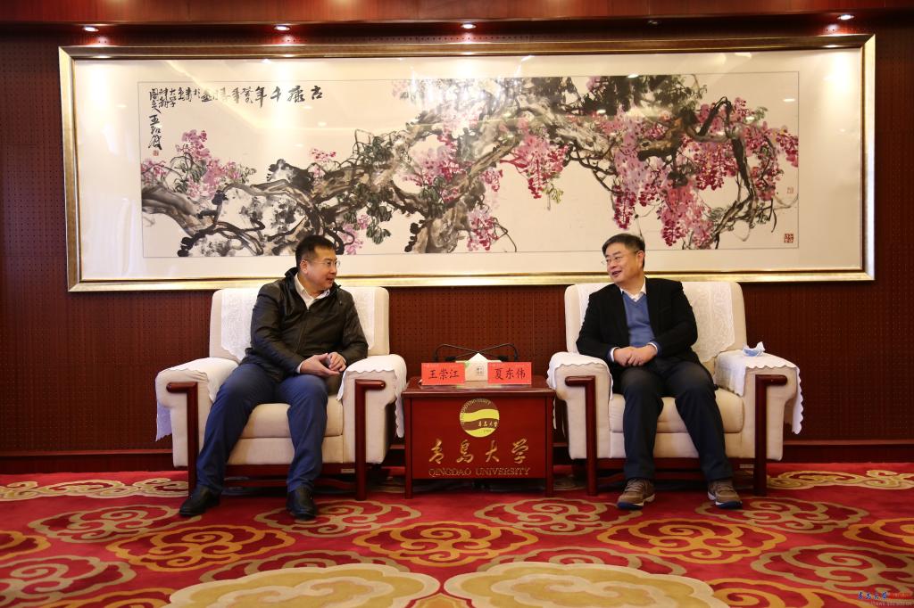 新闻网讯 1月13日上午,青岛市科协副主席王崇江、组织人事部部长袁勇一行来访beat365。校长夏东伟会见并座谈,科技处处长李荣贵陪同参加座谈会。