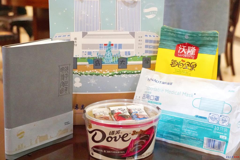 疫情的态势变化挡住了青大学子归家的路,却没有挡住学校对学子们的浓浓关怀。夏东伟为每位同学赠送“青大暖心礼包“,有象征快乐的巧克力、象征力量的每日坚果,还有象征守护的医用口罩,并亲笔为每位同学书写了”坚定信心,守望春来“的寄语。