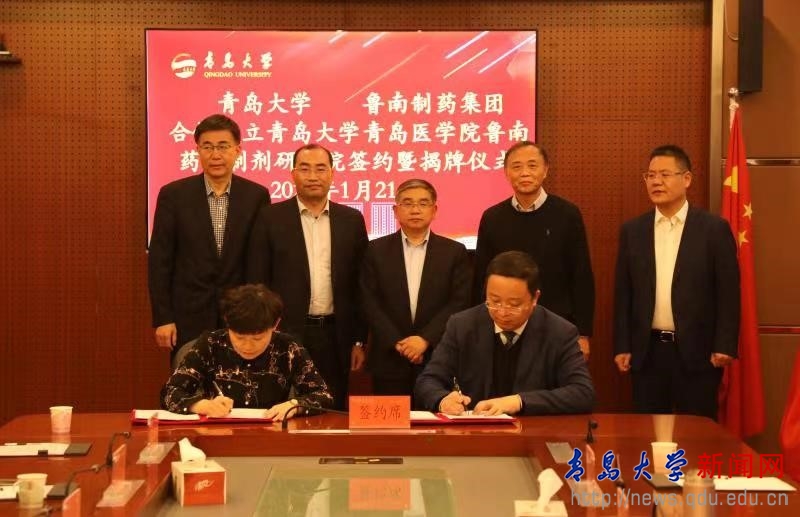 医学部部长姜宏和张贵民分别代表双方签署《beat365在线唯一官网青岛医学院与鲁南制药集团股份有限公司共建beat365在线唯一官网青岛医学院鲁南药物制剂研究院的合作协议》。