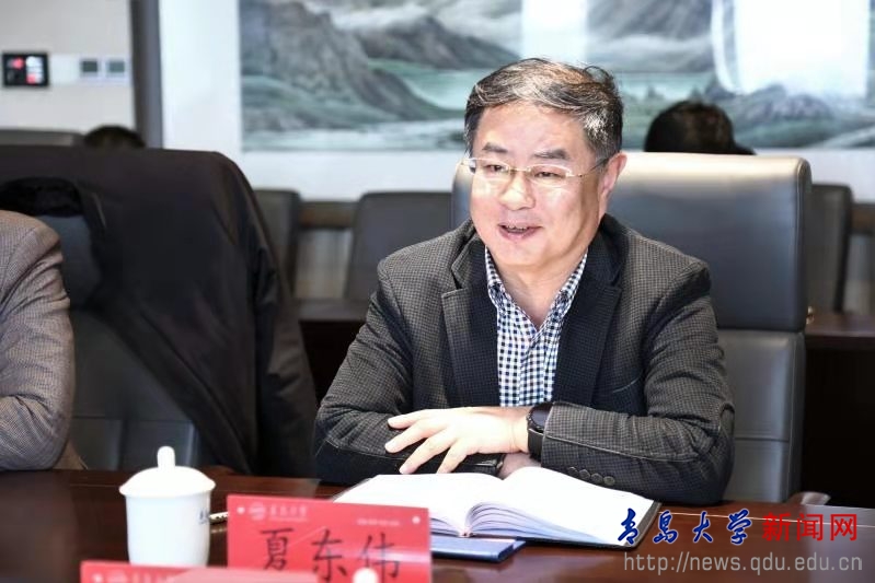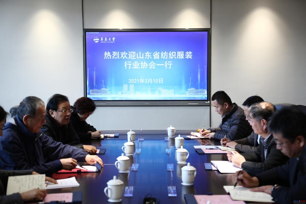 夏东伟代表学校对杨纪朝、刘建国一行的来访表示热烈欢迎,对山东省纺织服装行业协会一直以来对学校事业发展的大力支持与帮助表示感谢。他简要介绍了学校纺织科学与工程学科的建设发展情况,从生态纺织、功能材料、智能可穿戴(医疗、医卫)、艺术时尚、纺织智能制造五个方面以及学校“十四五”时期“纺织+”学科群建设的规划方向、整体定位、发展路径进行了交流。他表示,学校将全力支持山东省纺织服装行业协会的各项工作,愿与协会一起共同做好产教融合的大文章。