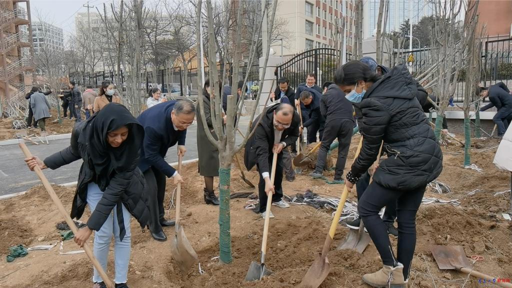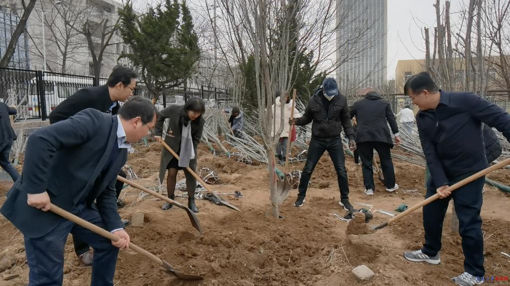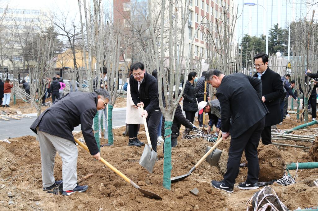 此次义务植树活动在浮山校区西院宁德路人防过街地下通道附近的空地集中栽植西府海棠110棵。校领导与中外学子共同挖坑、培土、栽植,大家齐心协力、干劲十足,空地转瞬成林。现场欢声笑语,一派热火朝天的春日劳动景象。