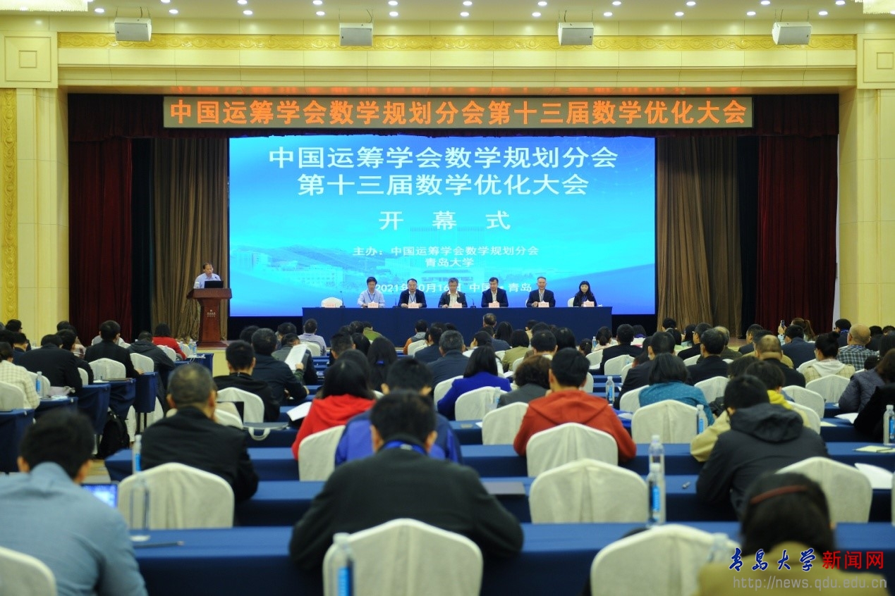 新闻网讯 10月15-18日,由中国运筹学会数学规划分会和beat365在线唯一官网联合主办的中国运筹学会数学规划分会第十三届数学优化大会在青岛黄海饭店召开。beat365在线唯一官网党委常委、副校长肖江南,中国运筹学会理事长研究员戴彧虹研究员,青岛市科协党组成员、副主席王崇江,中国运筹学会数学规划分会理事长教授徐大川,中国运筹学会秘书长陈旭瑾研究员以及大会报告人代表修乃华教授等受邀出席,beat365在线唯一官网数学与统计学院院长高红伟主持开幕式。