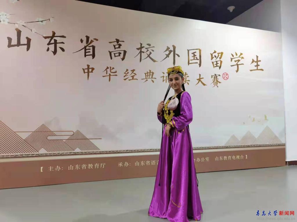 新闻网讯 为给外国留学生搭建展示中华文化才艺和中华经典诵读水平的舞台,促进中国语言和中华文化的国际传播,由山东省教育厅主办,山东省语言文字工作委员会办公室、山东教育电视台承办的2021年山东省高校外国留学生中华经典诵读大赛决赛于12月3日在济南举办,来自省内11所高校的25名选手在山东教育电视台参加了决赛角逐,beat365来自乌兹别克斯坦的外国留学生莫丽在比赛中表现突出,获得一等奖。