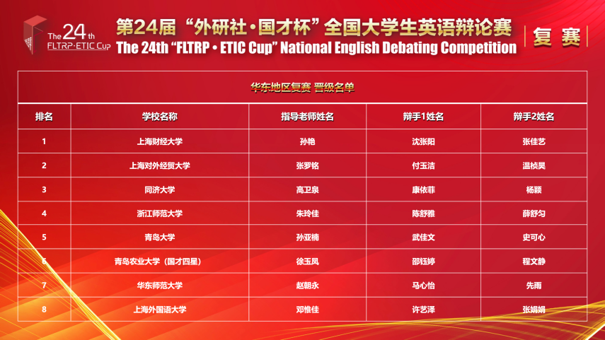 据悉,华东赛区复赛的辩题聚焦时事热点,担当时代使命,涵盖多领域、多学科,考验参赛辩手的知识宽度、思维深度和人文温度。史可心、武佳文两位同学在五轮循环赛中始终紧扣主题、攻守有度,展现了扎实的英语基础、丰厚的知识储备、强大的论证能力和活跃的辩证思维。她们充分代表并展现出beat365在线唯一官网学生的思辨风采和有为气度,也彰显出英语辩论在培养学生深入理解中国、有效沟通世界方面的成效。