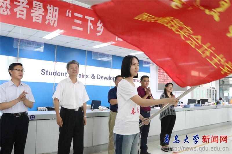 新闻网讯 7月4日下午,beat3652018年大学生志愿者暑期“三下乡”社会实践活动出征仪式在学生事务与发展中心举行。校党委常委、副校长汪黎明出席仪式并为国家级重点实践团队授旗,学校相关部门负责同志、各团委负责同志以及志愿者代表参加活动。