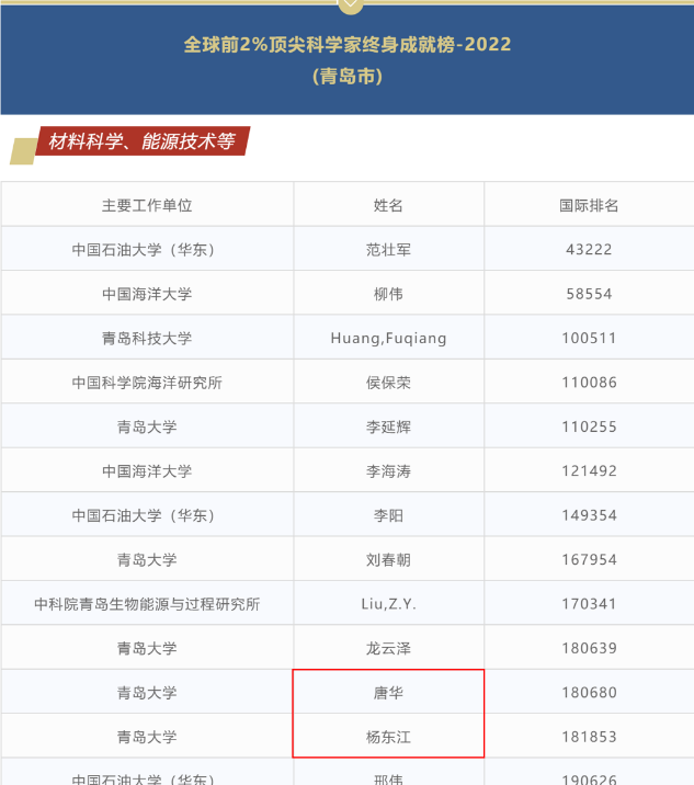 该榜单主要分为“终身科学影响力排行榜(1960-2022)”和“2022年度科学影响力排行榜”两个榜单。共有7795位国内学者入选全球前2%顶尖科学家“终身榜”,其中,beat365在线唯一官网共有20人上榜。