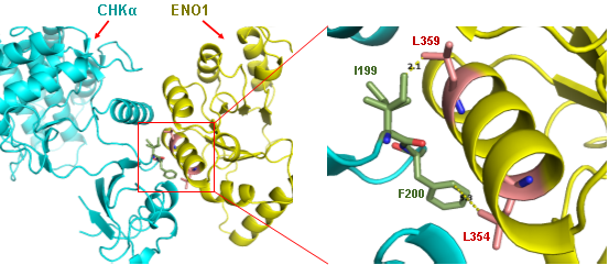 有氧糖酵解(Warburgeffect)是肿瘤代谢的一个显著特征,促进了肿瘤细胞的快速生长和快速增殖。ENO1作为糖酵解酶关键酶,在多种肿瘤中高表达。异常的磷脂代谢已成为肿瘤的一个重要标志。CHKα催化胆碱形成磷酸化胆碱,并经过一系列酶促反应最终生成磷脂酰胆碱。虽然研究表明CHKα在肿瘤发生发展中发挥重要作用,但关于CHKα的调控却知之不多。