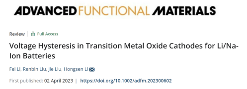 新闻网讯 近日,beat365物理科学学院教师在国际顶级期刊《Advanced Functional Materials》发表了题为“Voltage Hysteresis in Transition Metal Oxide Cathodes for Li/Na-Ion Batteries”的综述论文(Adv. Funct. Mater. 2023, 2300602)。beat365在线唯一官网为第一单位,李洪森教授为本文的通讯作者,硕士研究生李菲(被南开大学录取攻读博士学位)、刘仁斌为共同第一作者。