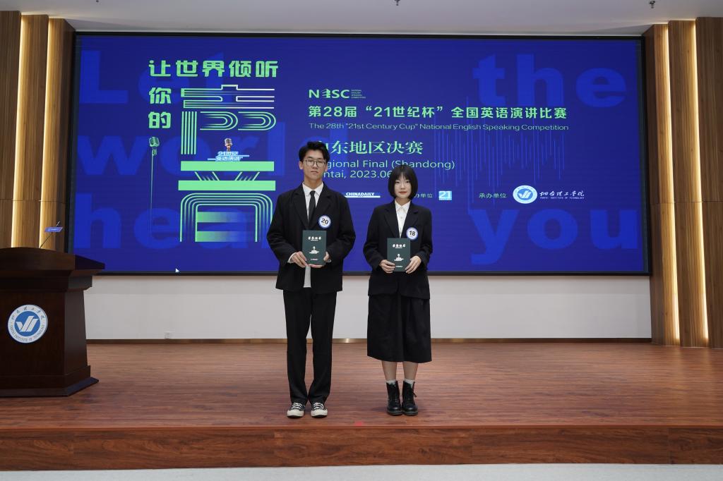 新闻网讯 6月2日,第28届“21世纪杯”全国英语演讲比赛山东地区决赛在烟台圆满结束。beat365外语学院德语系、英语教育系学生王筱彤、于昊分获本次比赛一等奖和二等奖。王筱彤同学将代表山东省参加全国半决赛。