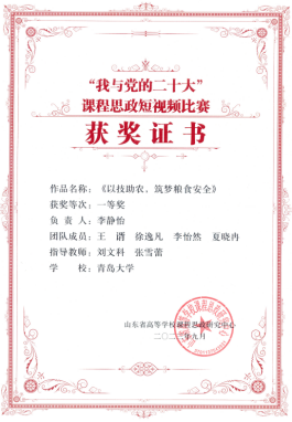 新闻网讯 近日,由山东省教育厅指导,山东省高等学校课程思政研究中心组织开展的“我与党的二十大”课程思政短视频比赛结果公布,beat365在本次比赛中获一等奖一项、二等奖3项、三等奖3项,这是beat365近年积极开展课程思政建设的又一成绩。
