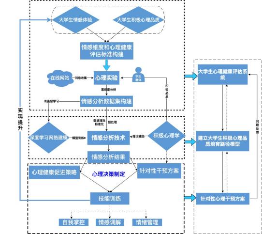 该项目结合情感分析技术和深度学习方法,采用大数据分析、自然语言处理等技术,探讨大学生情感状态的多种维度,如满足、快乐、忧虑等,以及与积极心理品质如自我肯定性、社交支持等的相互影响。旨在深入理解大学生的情感体验和积极心理品质,并构建一个针对性的心理干预体系,为不同背景和情感状态的大学生提供定制化的心理干预方案。该项目旨在为高校辅导员提供一个科学、实用的心理健康评估和干预工具,提高大学生的整体心理健康水平,加强高校辅导员与学生的互动与沟通,培养学生的积极心理品质。